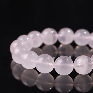 This bracelet features milky Rose Quartz with a soft, velvety glow, creating a calm and comforting aura around you.