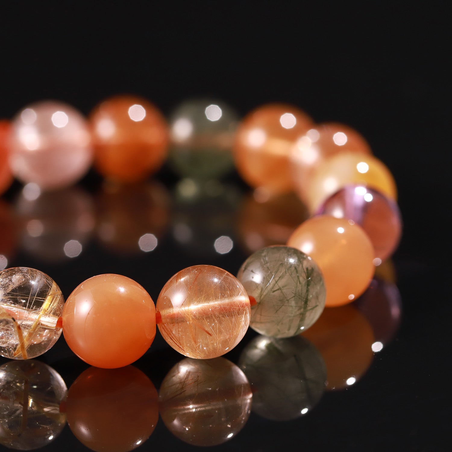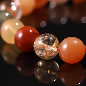 This bracelet combines golden, red, green, and smoky rutilated quartz — balancing vitality, stability, and abundance within your energy field.