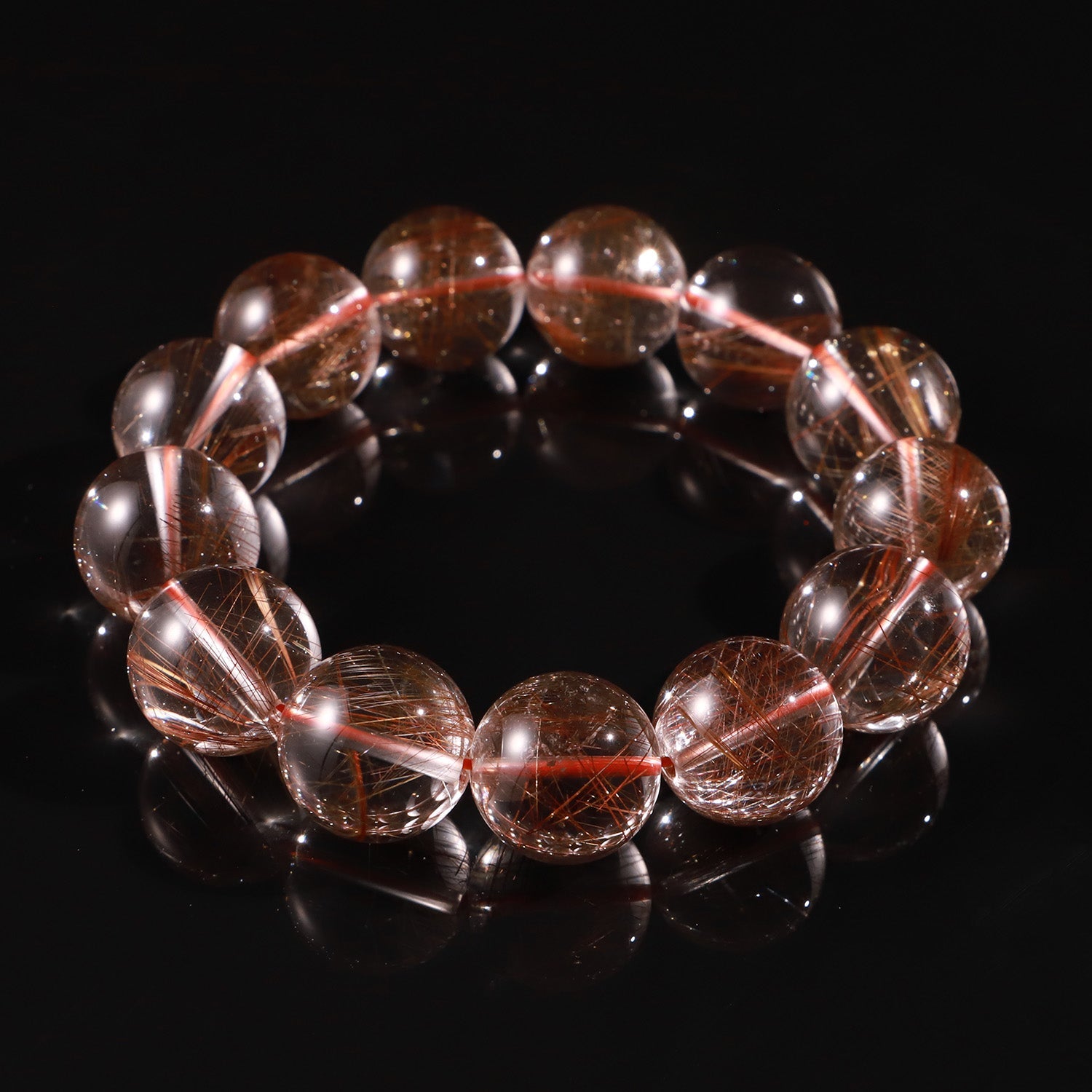 The red-golden threads within each bead symbolize flowing energy — reminding you to live with purpose and enthusiasm.