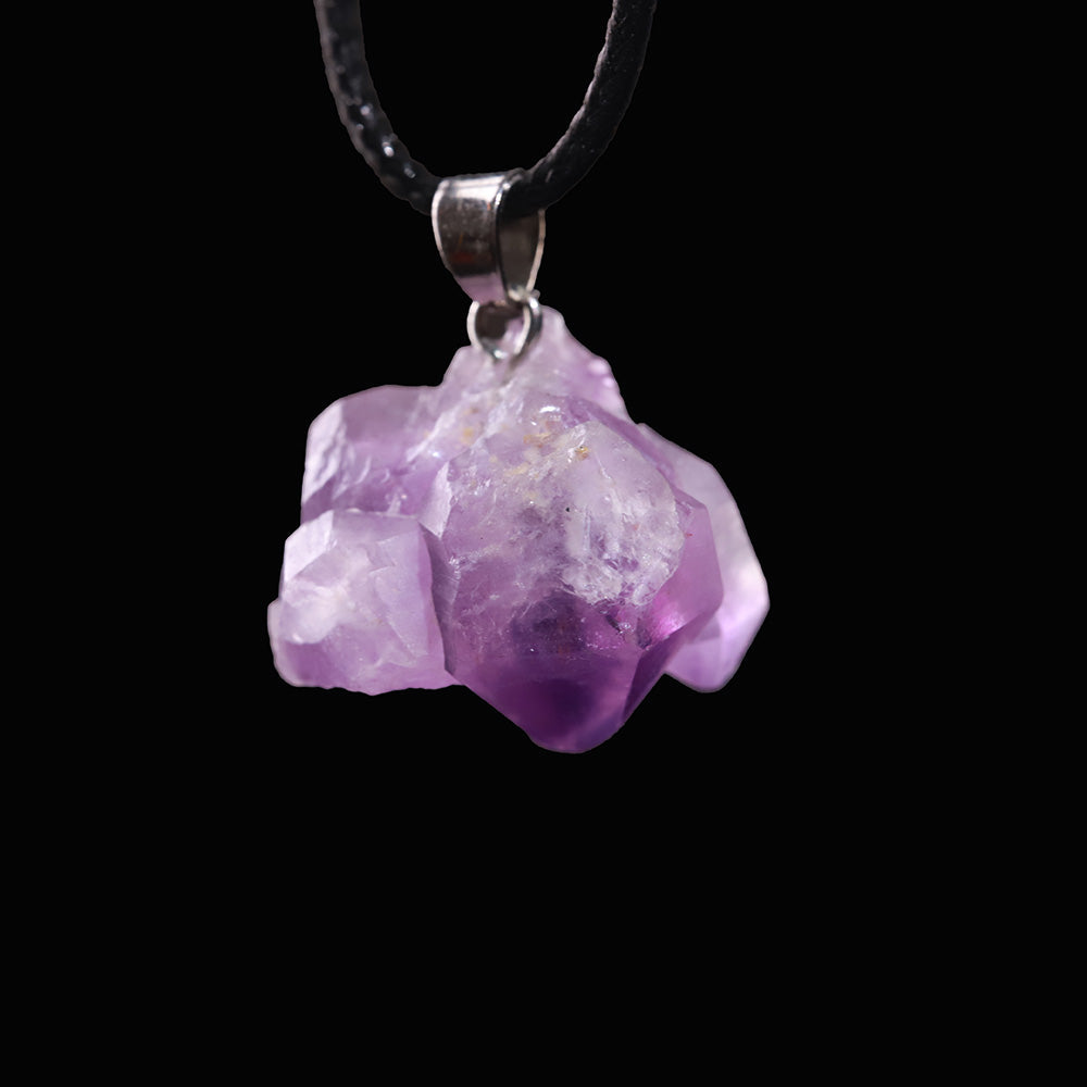 Material: Natural raw amethyst crystal, metal bail, braided cord