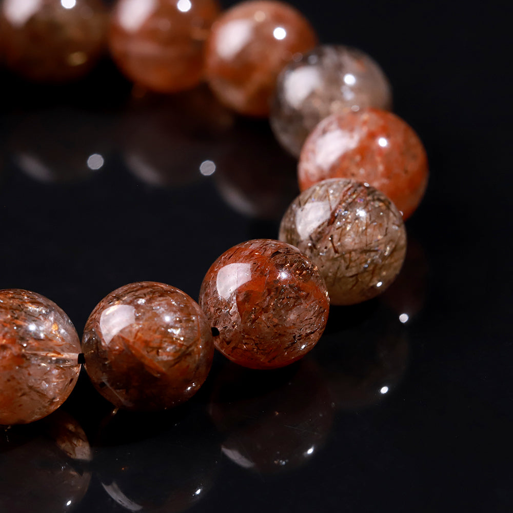 The darker beads offer strong shielding energy, while the warmer golden-red tones add motivation and a subtle “wealth magnet” vibration.