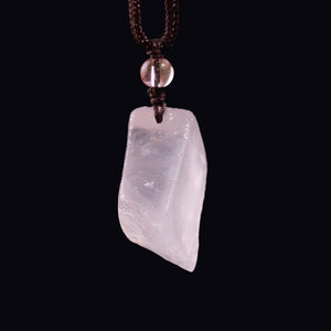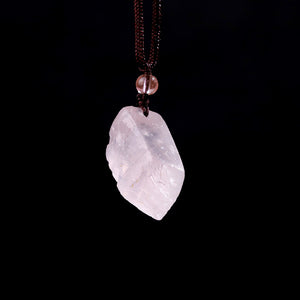 Material: Raw Rose Quartz pendant with one round bead, braided cord
